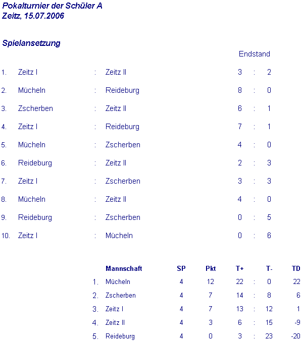 Pokalturnier der Schüler A am 15.07.06 in Zeitz