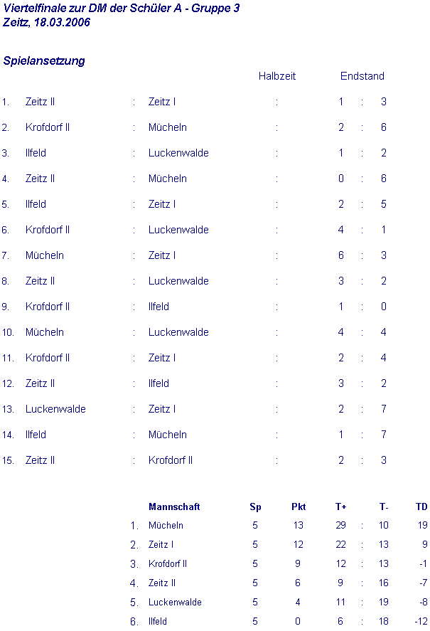 Viertelfinale zur DM der Schüler A - Gruppe 3 am 18.03.06 in Zeitz