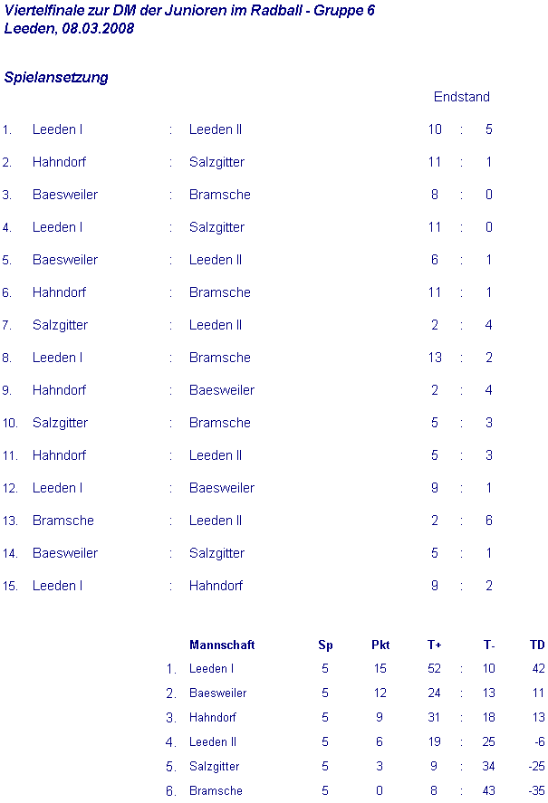 Viertelfinale zur DM der Junioren Gruppe 6 am 08.03.08 in Leeden